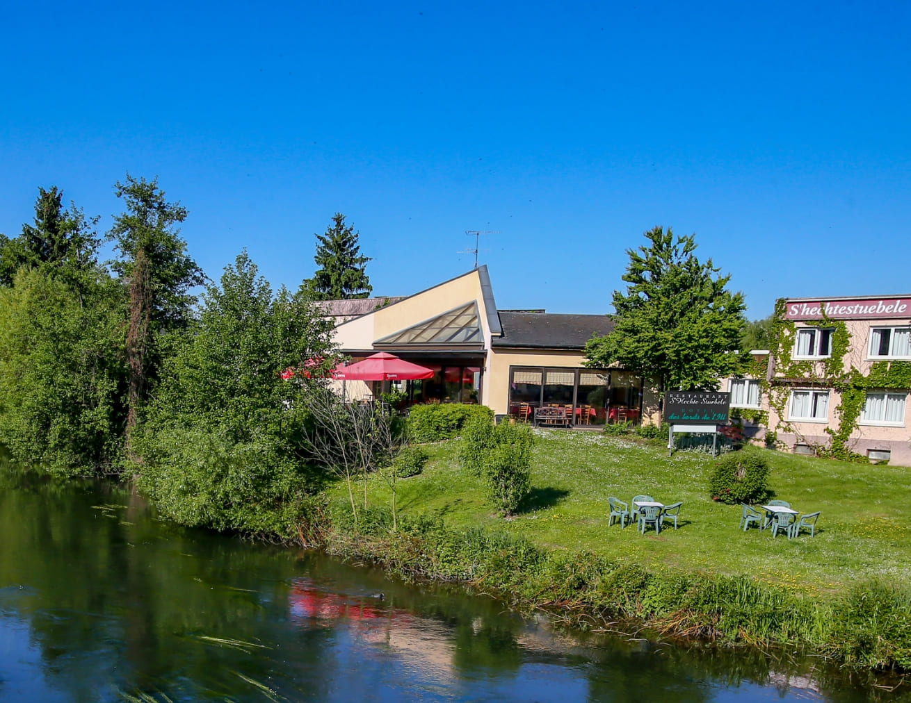 Séjourner à l’Hôtel Bords de l’Ill, c’est vivre une belle histoire familiale qui dure depuis plusieurs générations. Tout a commencé à quelques mètres de là, dans l’actuel restaurant “Au Brochet”, où l’arrière-grand-père du gérant actuel, alors agriculteur, accueillait des groupes venus se restaurer dans une auberge conviviale. Son fils a poursuivi cette aventure humaine en créant un motel pour répondre à la demande croissante d’hébergement des clients de l’auberge. L’objectif était clair : offrir un lieu simple, abordable et chaleureux aux voyageurs de passage.